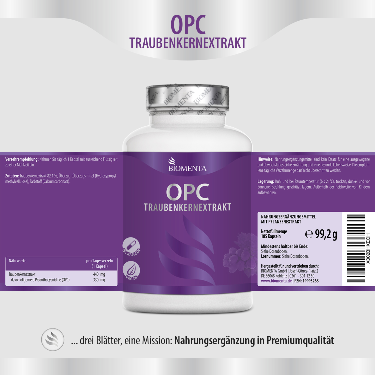 ✔ Sie erhalten 185 OPC-Traubenkernextrakt-Kapseln