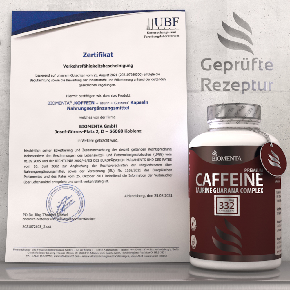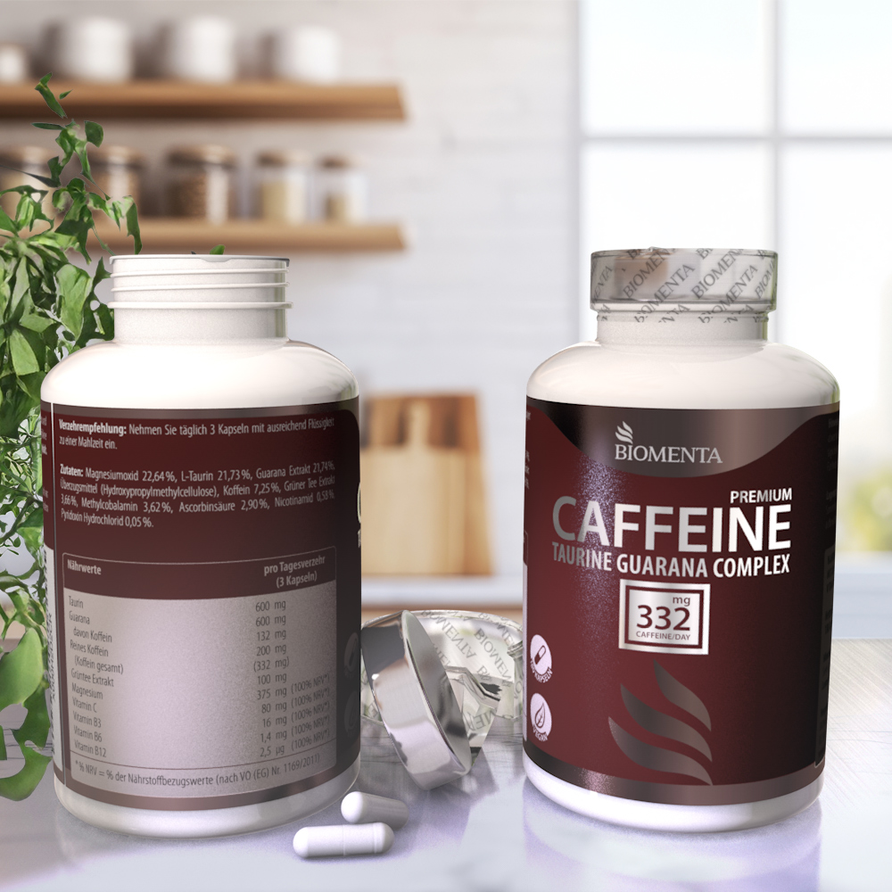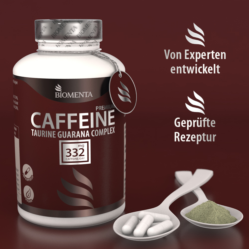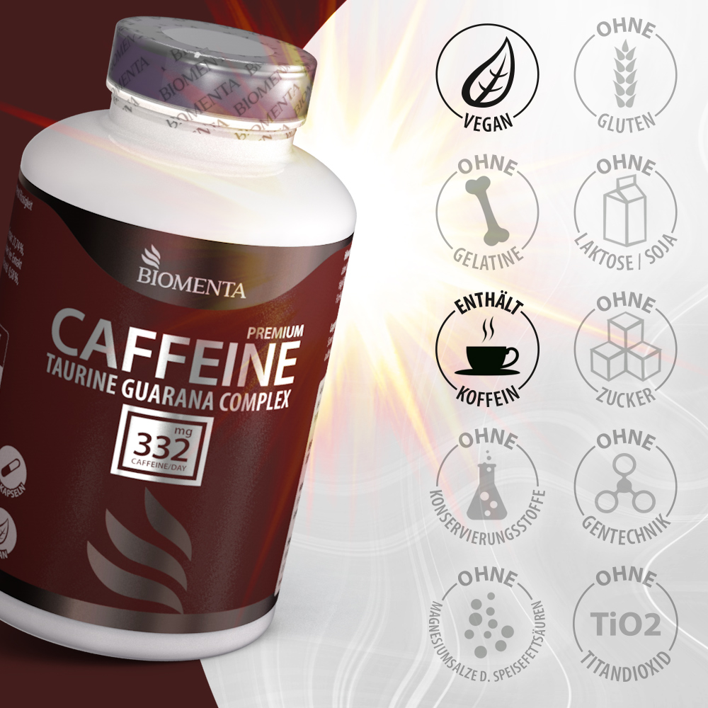 BIOMENTA Premium Caffeine + Taurine + Guarana Complex – Unsere hochdosierten bewährten Koffein Kapseln