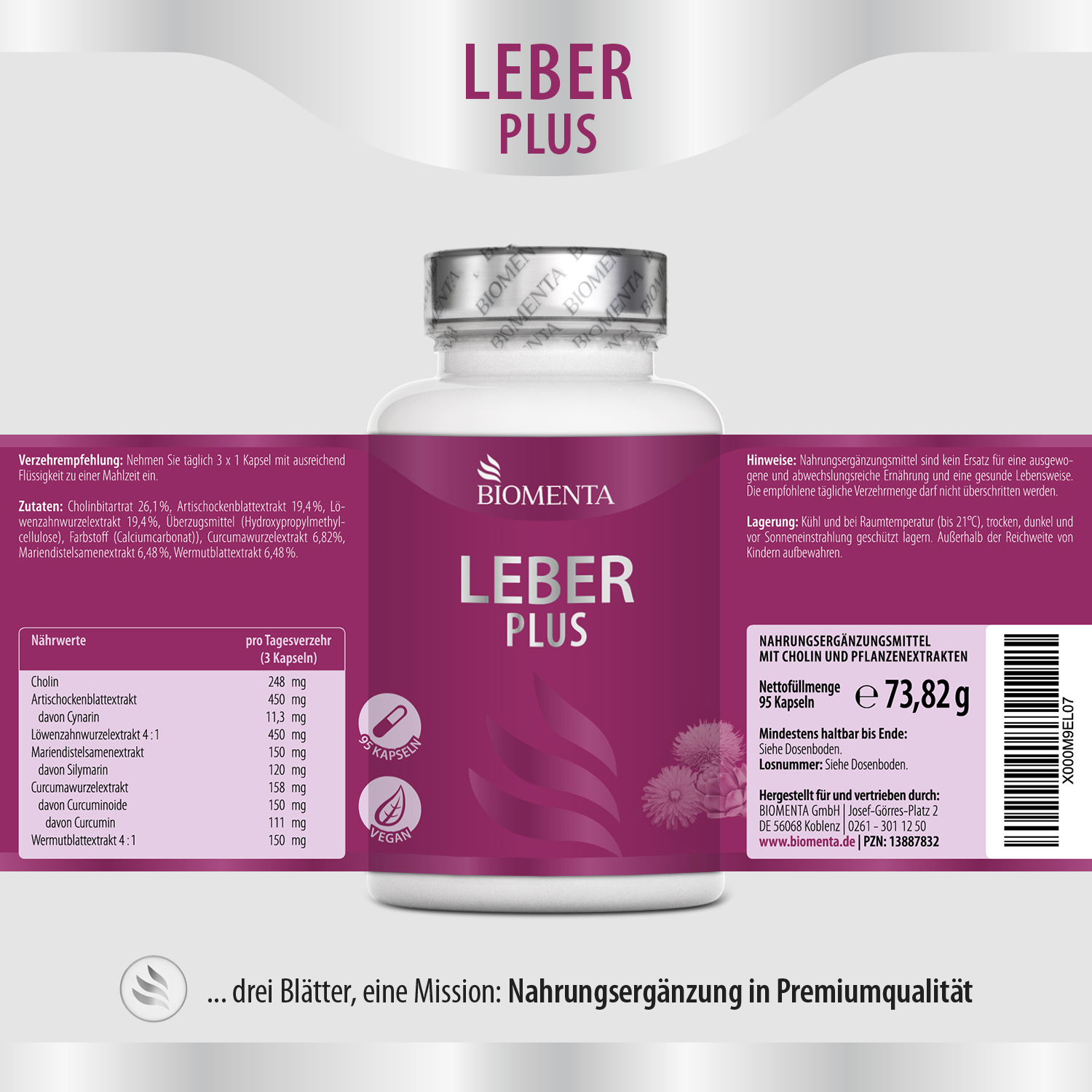 [257,25€/1Kg] BIOMENTA Leber PLUS – 95 Kapseln – vegan