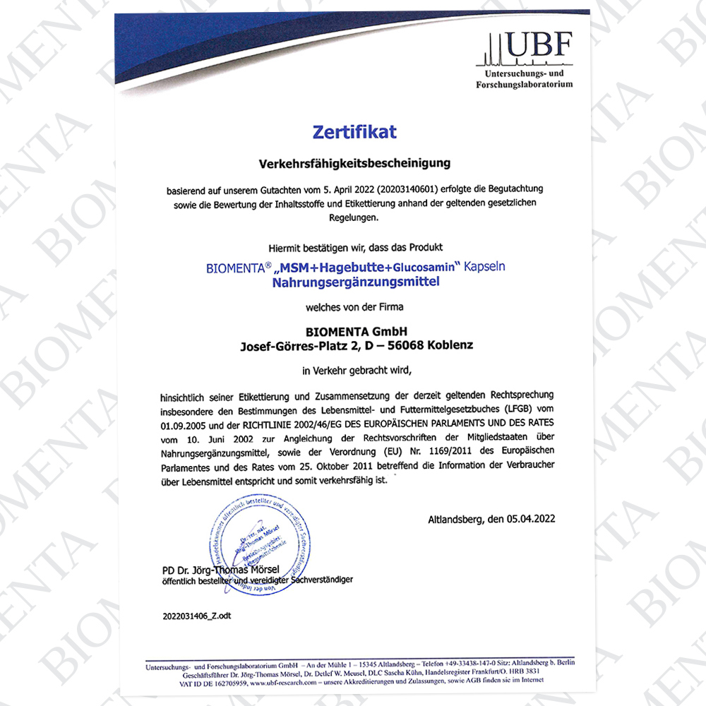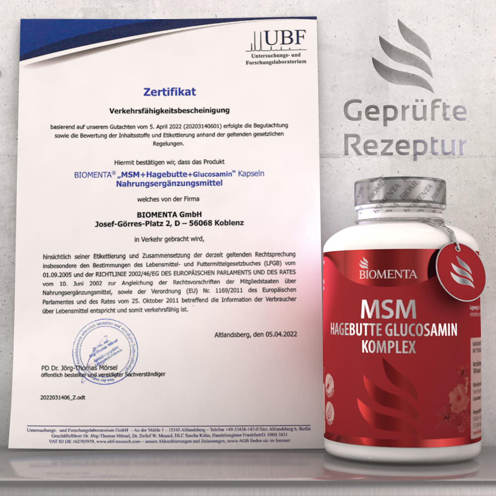 BIOMENTA MSM + Hagebutte + Glucosamin-Sulfat – Sorgfältig abgestimmte Premium-Formel